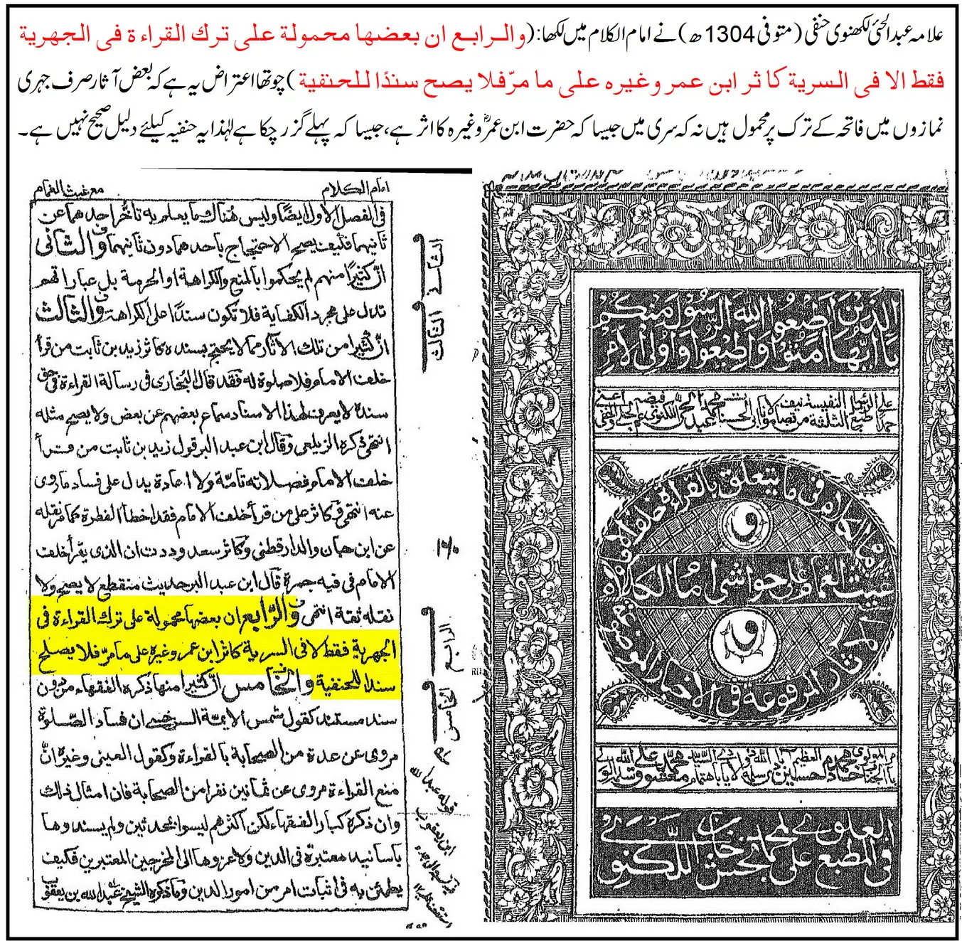 “Some narrations merely apply to the omission of al-Fātiḥah in loud prayers, not silent ones. Such as the narration of Ibn ʿUmar, hence this cannot be used as conclusive proof for the Ḥanafīs.”