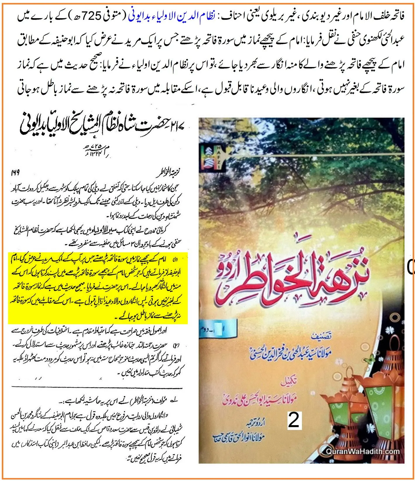 He would recite al-Fātiḥah behind the imām and in funeral prayers, citing the ḥadīth: “No prayer without al-Fātiḥah.”