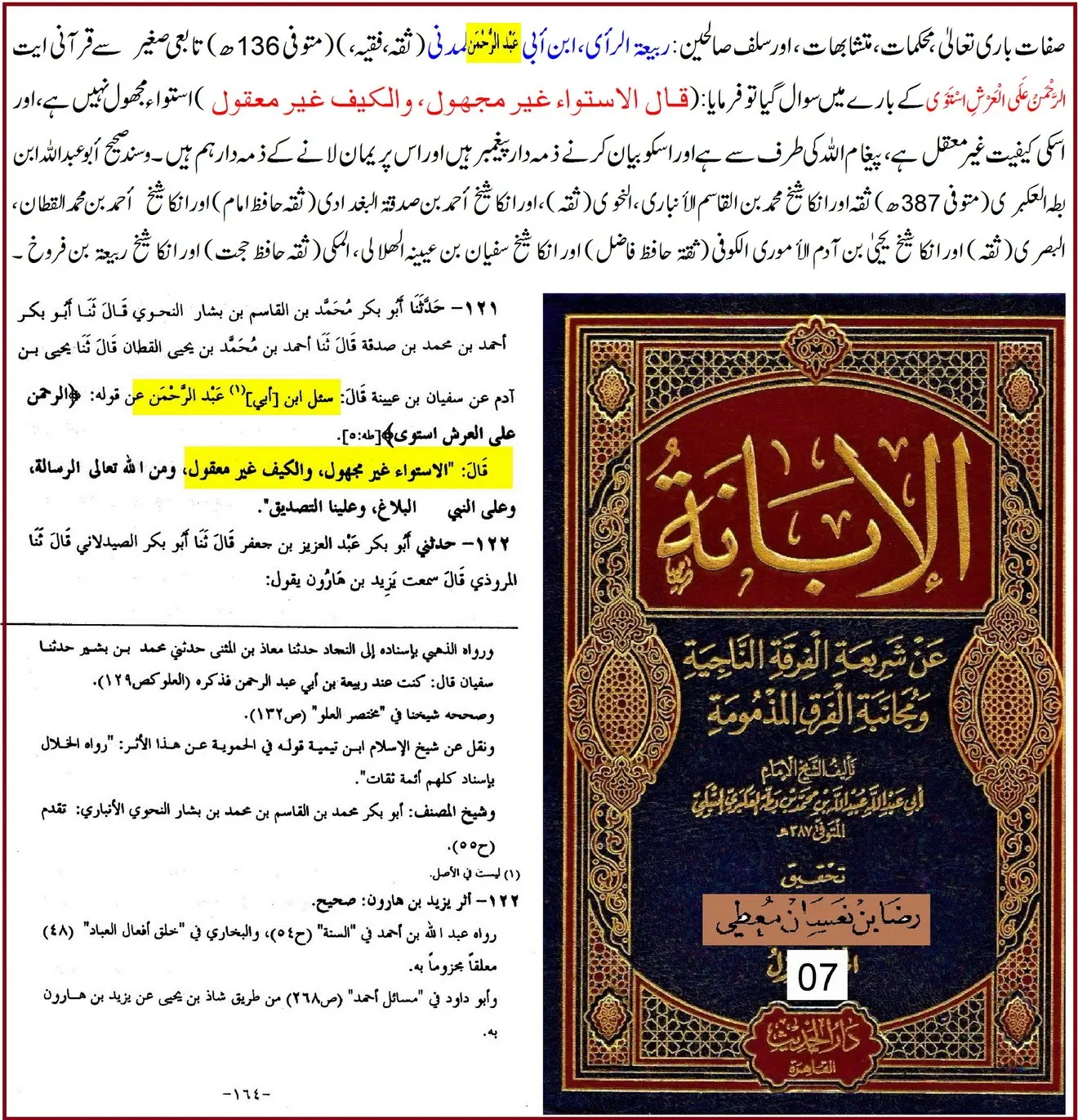 When asked about the nature of ﴿الرَّحْمَـٰنُ عَلَى الْعَرْشِ اسْتَوَى﴾, he replied: