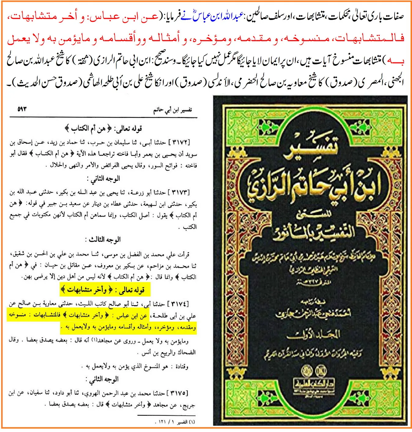 Ibn ʿAbbās said: “I am among those who know the interpretation of the mutashābih.” This view was endorsed by scholars like al-Ghazālī and al-Qāḍī Abū Bakr.