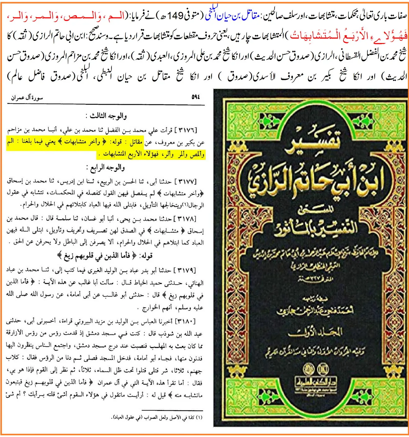 "لسنا نرتضي قول من يقول: إن ذلك من المتشابهات كحروف أوائل السور…"