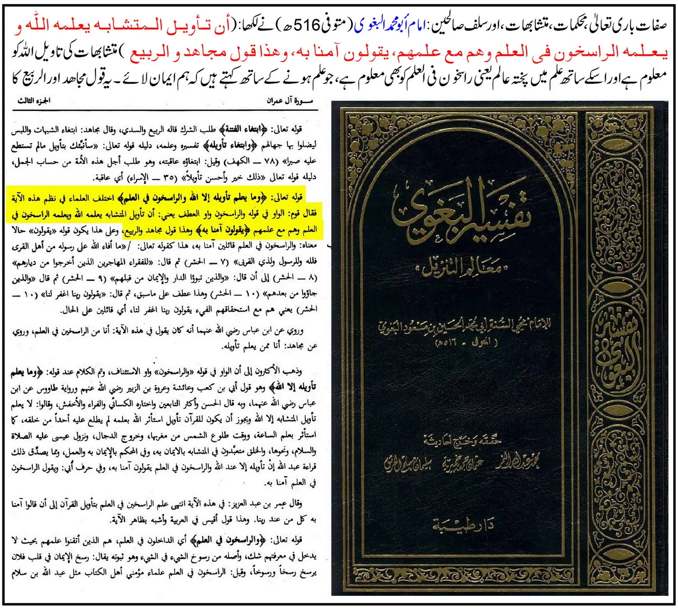 "تأويل المتشابه يعلمه الله والراسخون في العلم."