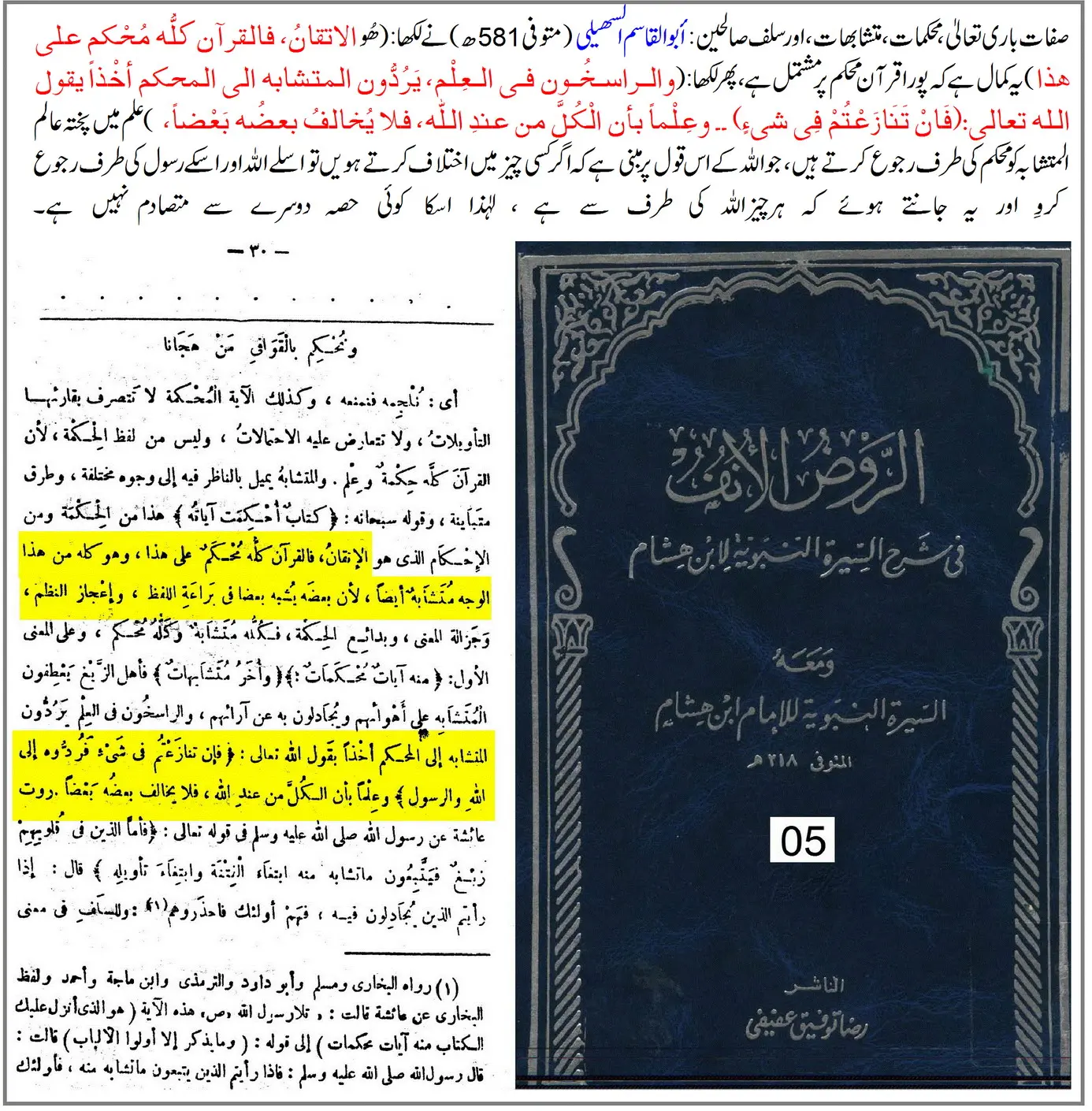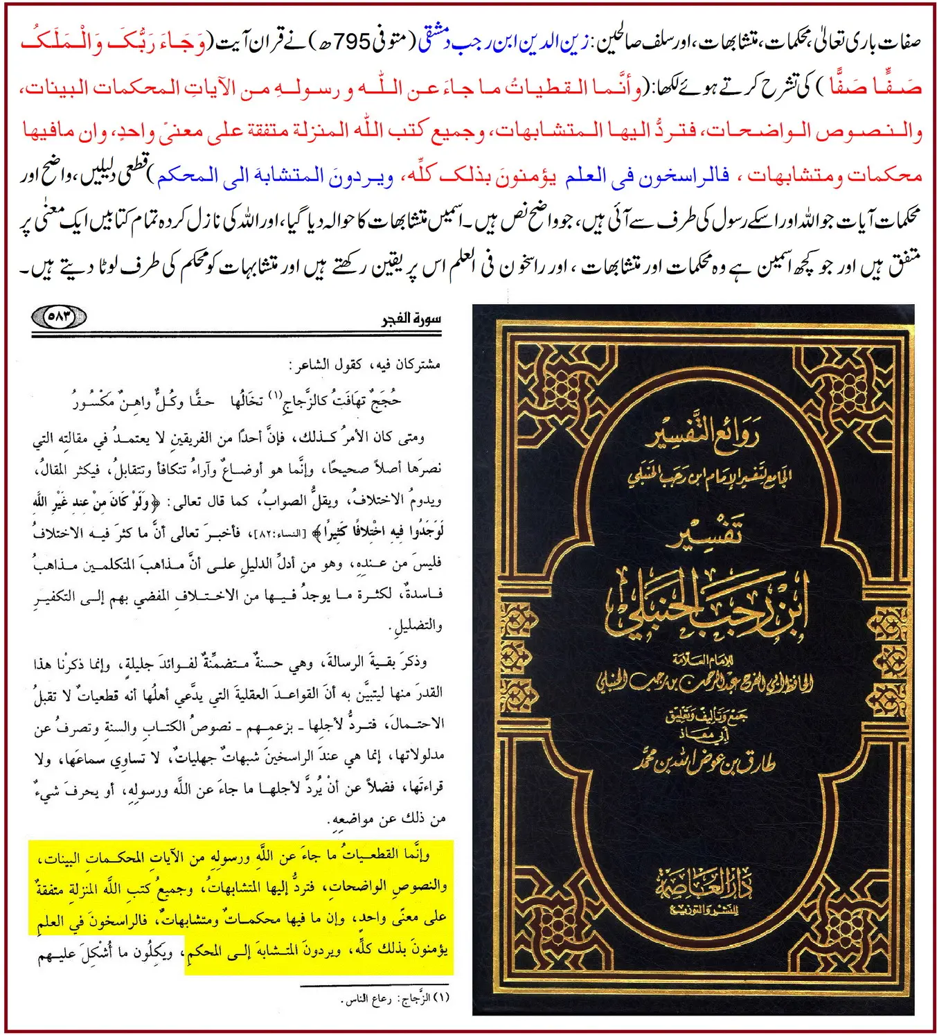 as mutashābih, whereas there is no evidence from the Salaf declaring this verse to be ambiguous.