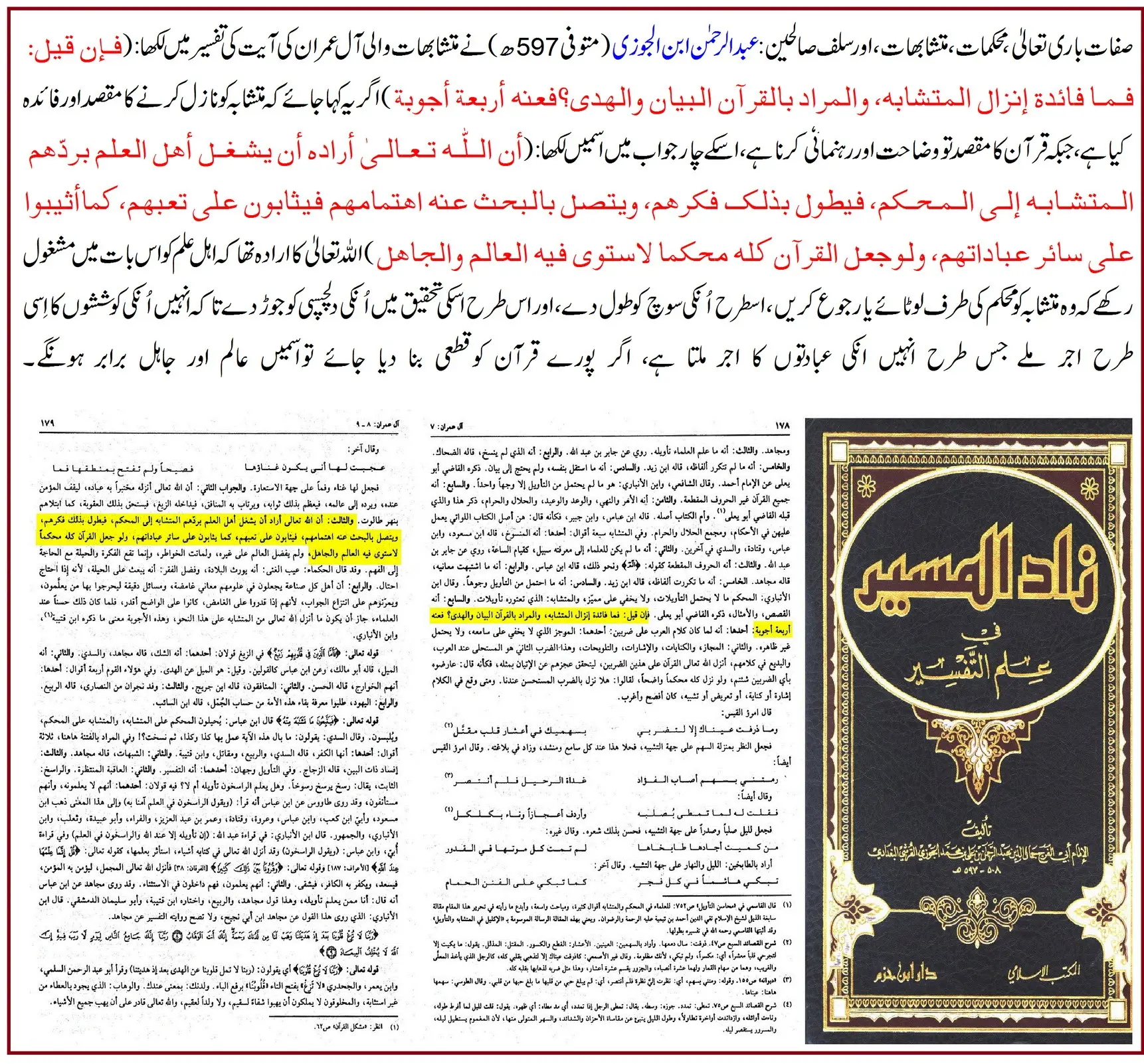 "أن الله تعالى أراد أن يشغل أهل العلم برد المتشابه إلى المحكم… فيثابون على تعبهم"