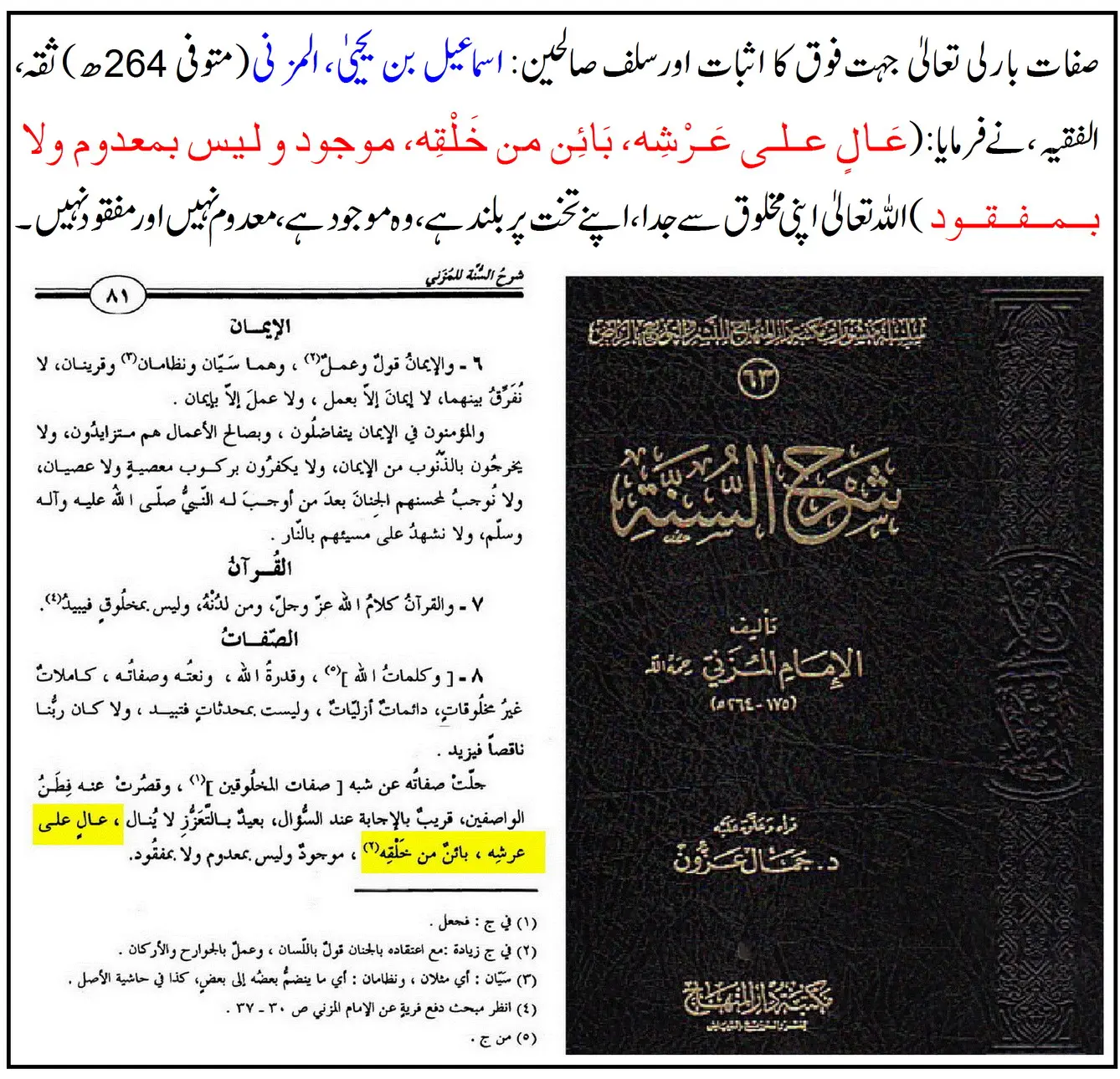 Thus, his ambiguous phrase cannot be used as a proof for negating fawqiyyah. Rather, it means Allah is not confined like creation.◈ Doubt Three: Imām Abū Jaʿfar al-Ṭaḥāwī (d. 321H)