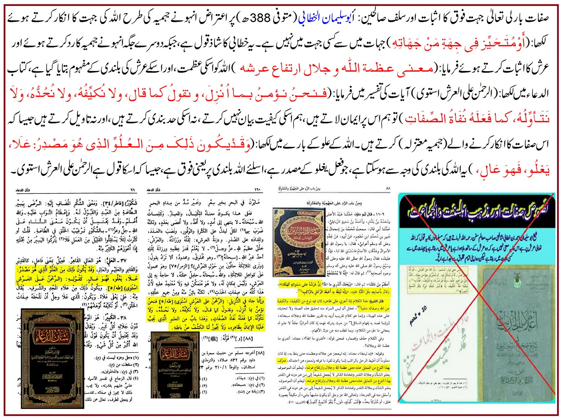 ✔ In Maʿālim al-Sunan (Sharḥ Sunan Abī Dāwūd), refuting the Jahmiyyah and Muʿtazilah, he wrote: